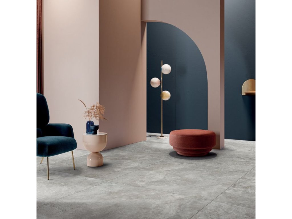 Velkoformátový rozměr 120x120 cm umožňuje vytvořit kompaktní, plynulý povrch s minimem spár, což podporuje elegantní a sjednocený vzhled prostoru.