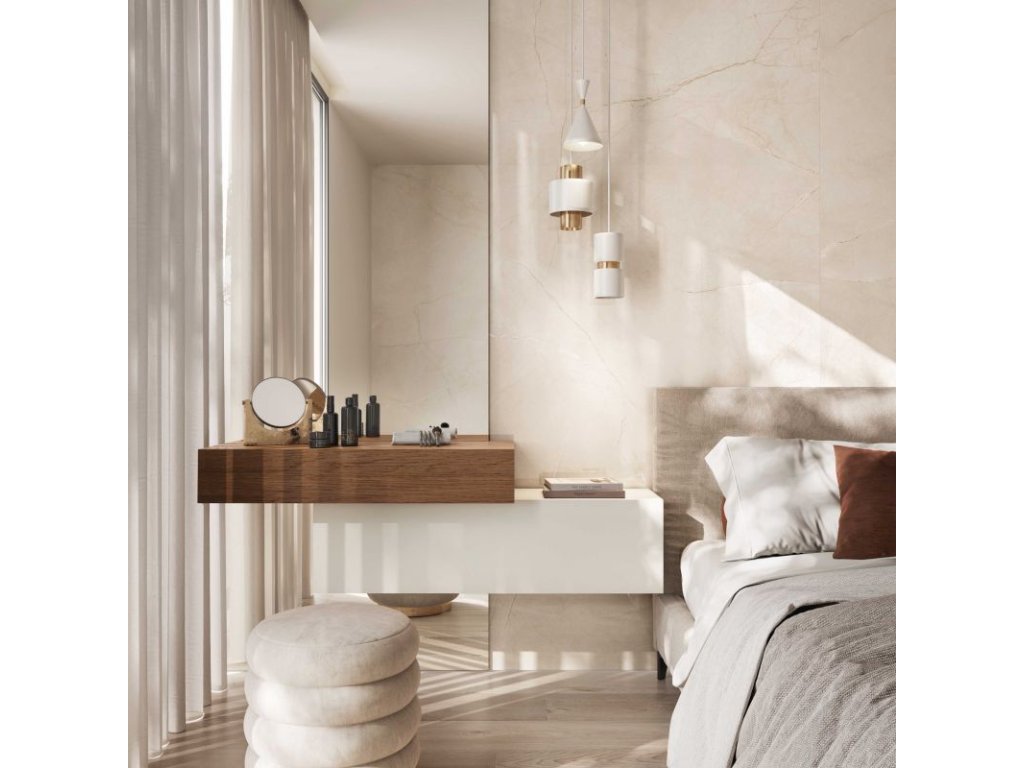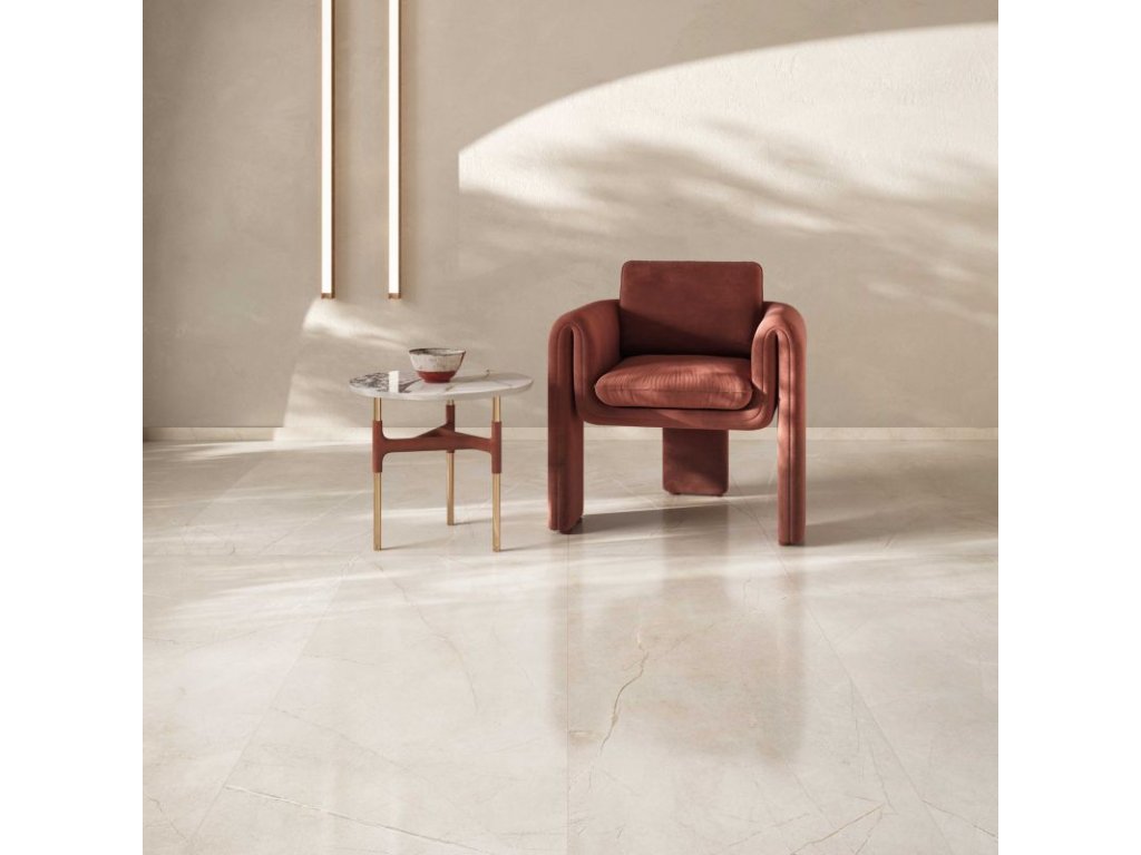 Velkoformátová keramická dlažba a obklad v rozměru 120 × 120 cm a tloušťce 8,5 mm přináší elegantní mramorový efekt v odstínu Pulpis Ivory. Díky rektifikovaným hranám je možné pokládku realizovat s minimální spárou, což podtrhuje luxusní vzhled povrchu. Materiál je mrazuvzdorný a univerzálně použitelný v interiéru i exteriéru.